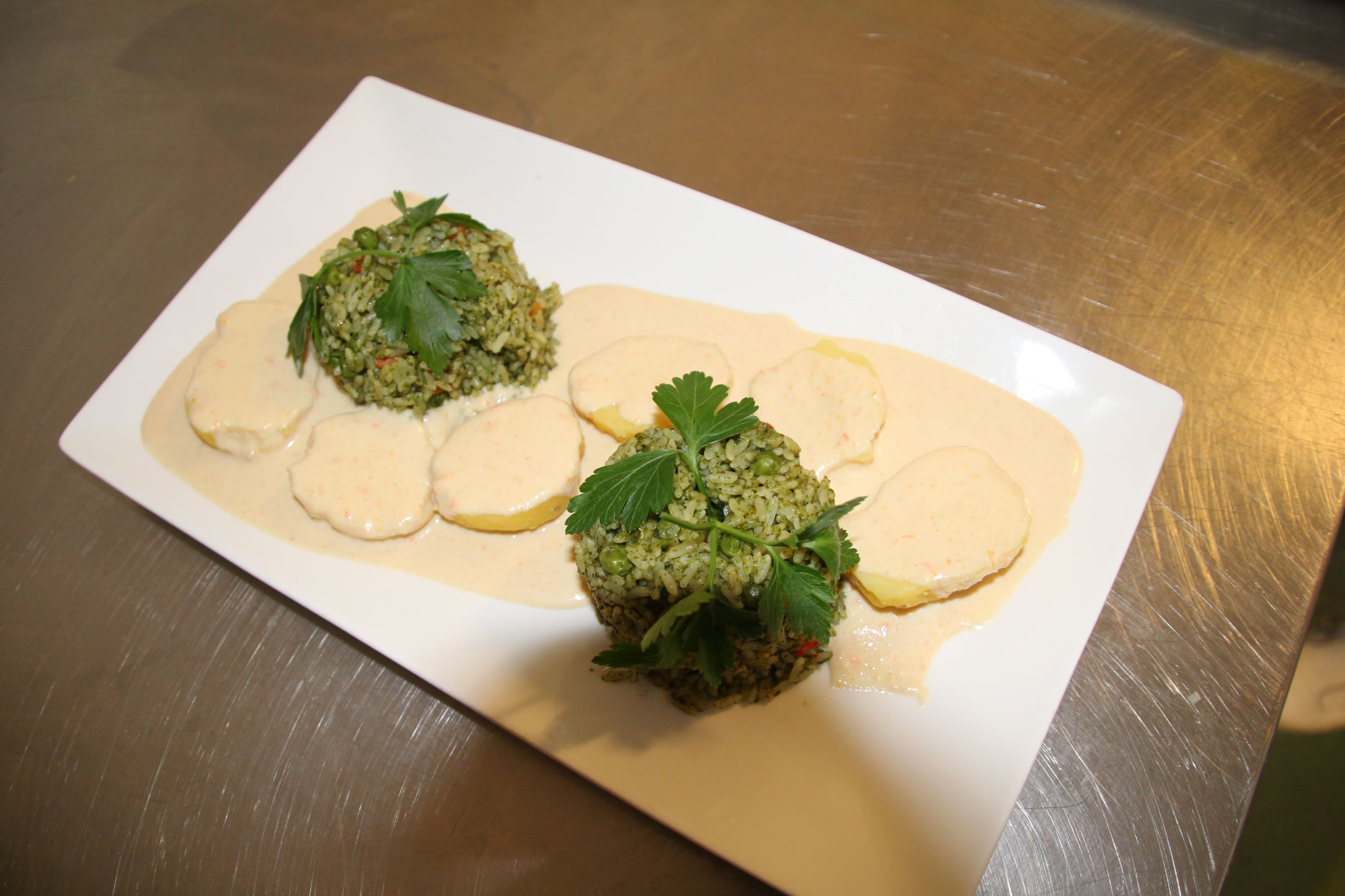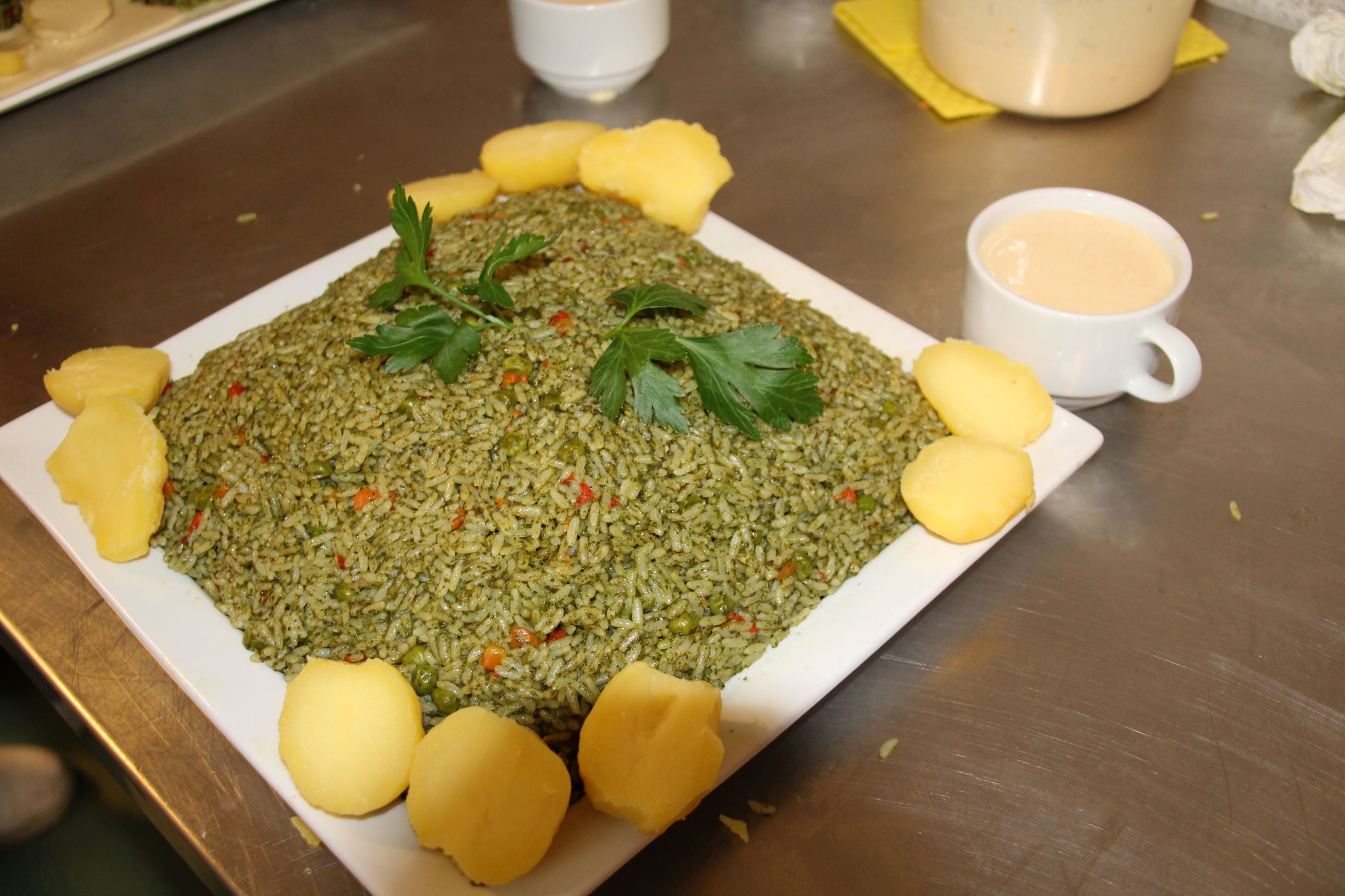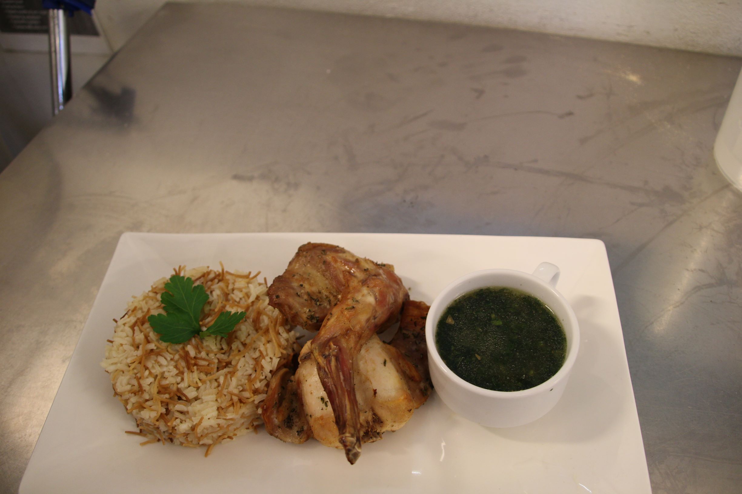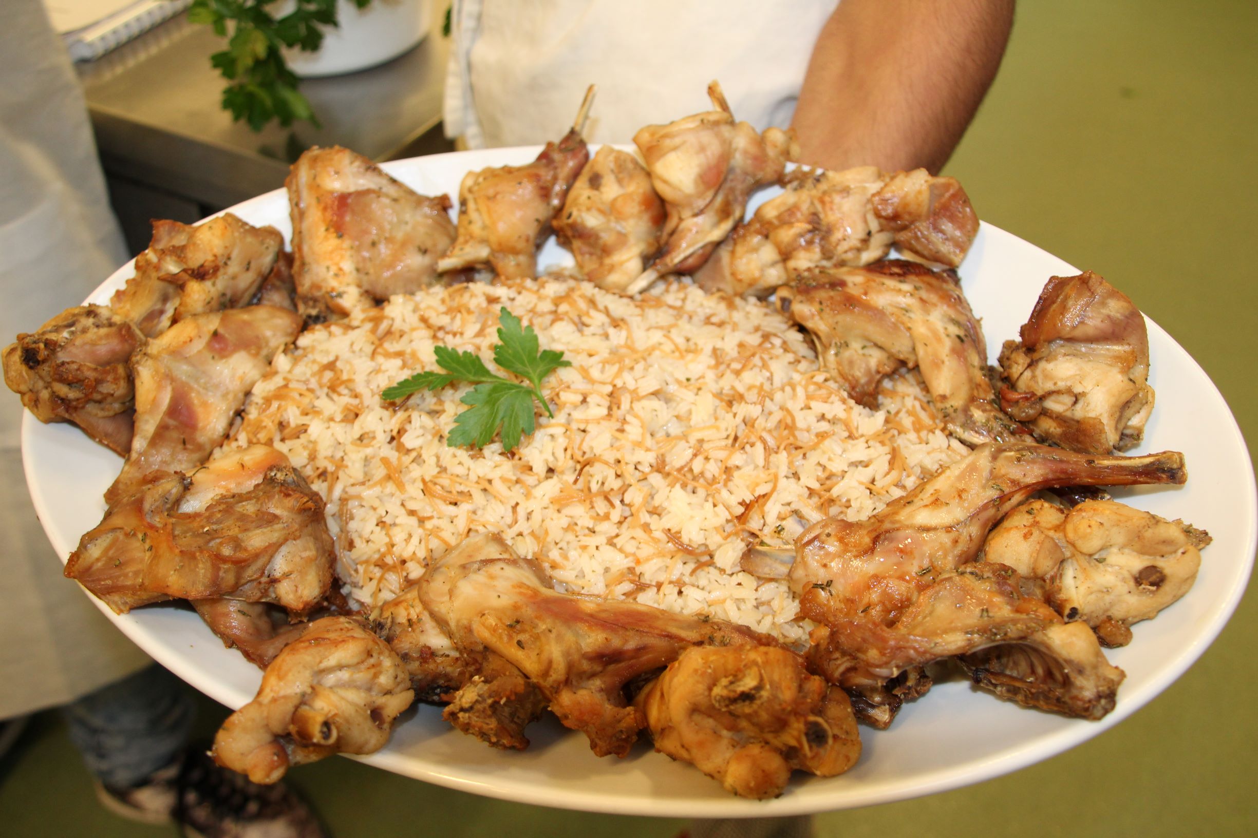 Il gruppo degli egizianiConiglio con Mlokhia“, con contorno di riso.