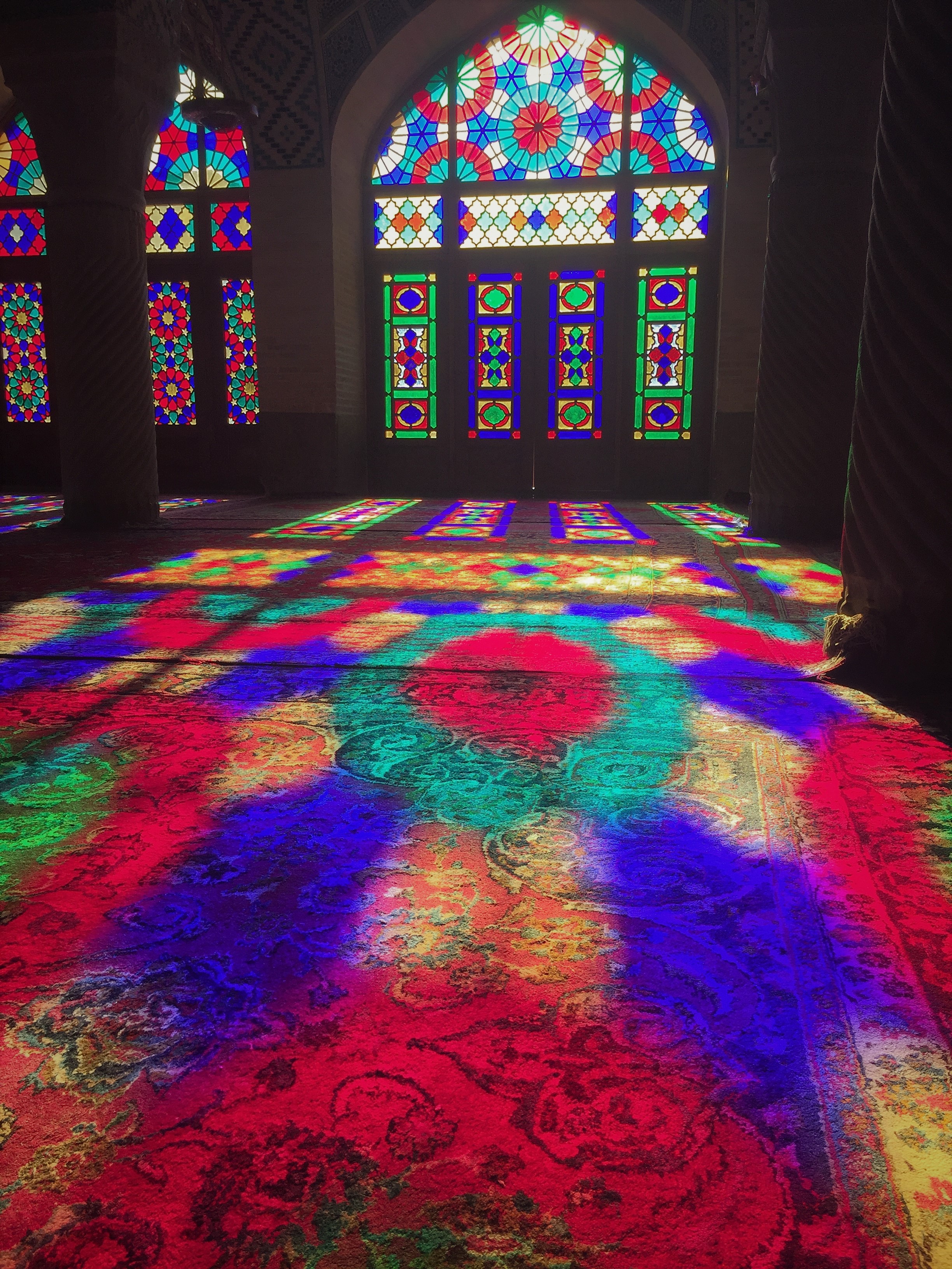 Moschea Nasir Ol Mosk. Lo spettacolo di colori è magico. Bisogna essere lì tra le 8.30 e le 11 e avere molta pazienza con gli altri turisti.